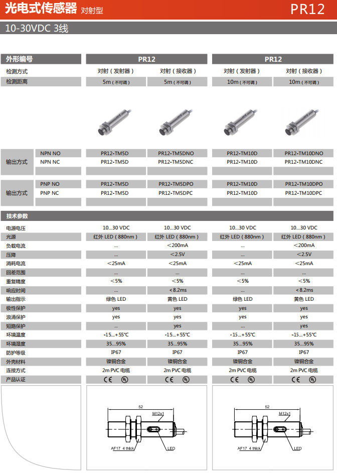 PR12-TM5D,PR12-TM5DNO,PR12-TM5DNC,PR12-TM5DPO,PR12-TM5DPC,PR12-TM10D,PR12-TM10DNO,光電式傳感器 |
