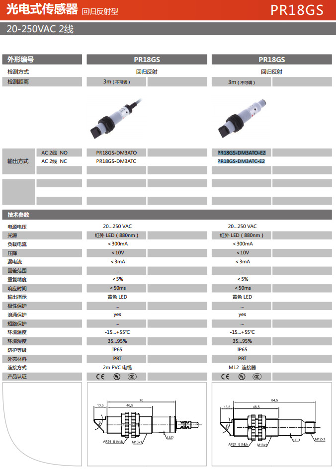PR18GS-DM3ATO,PR18GS-DM3ATC,PR18GS-DM3ATO-E2,PR18GS-DM3ATC-E2,光電式傳感器 |