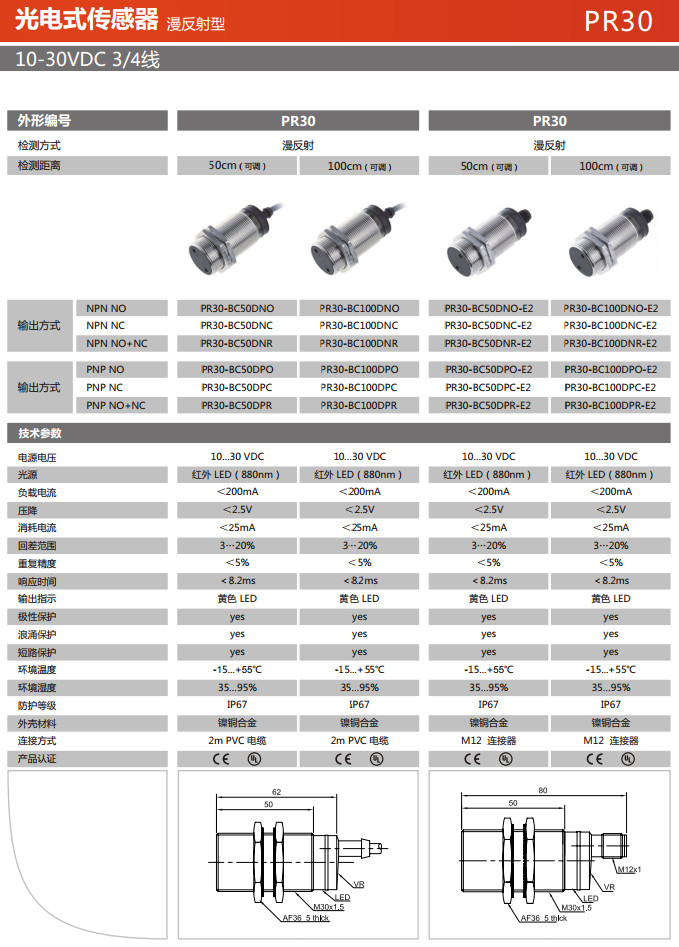 PR30-BC50DPO-E2,PR30-BC50DPC-E2,PR30-BC50DPR-E2,PR30-BC50DNO-E2,PR30-BC50DNC-E2,