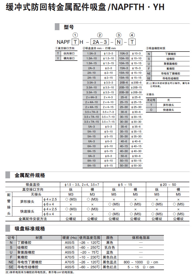 NAPFTH-1.5A,NAPFTH-30,NAPFTH-20B,NAPFYH-2A,NAPFYH-8A,NAPFYH-30,吸盤
