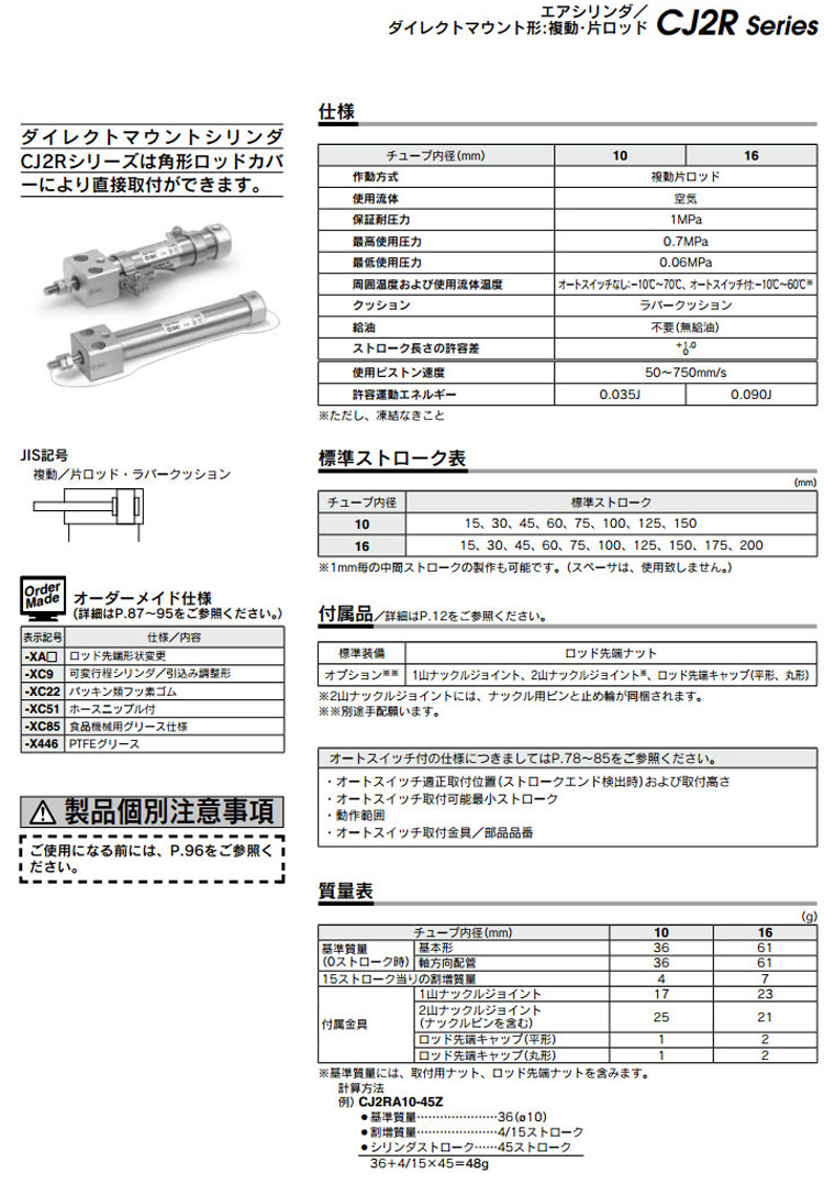 CJ2RA10,CJ2RA16,CDJ2RA10,CDJ2RA16,CJ2RA10-15,CDJ2RA10-15,SMC標準型氣缸