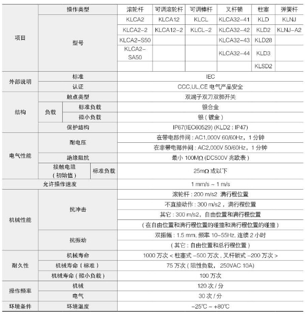 KLCA2,KLCA12,KLCL,KLCA32-41,KLD,KLNJ,KLCA2-2,KLCA12-2,KLCL-2,KLCA32-42,KLD2,KLNJ-A2,Koino限位開(kāi)關(guān)