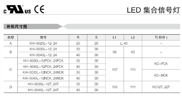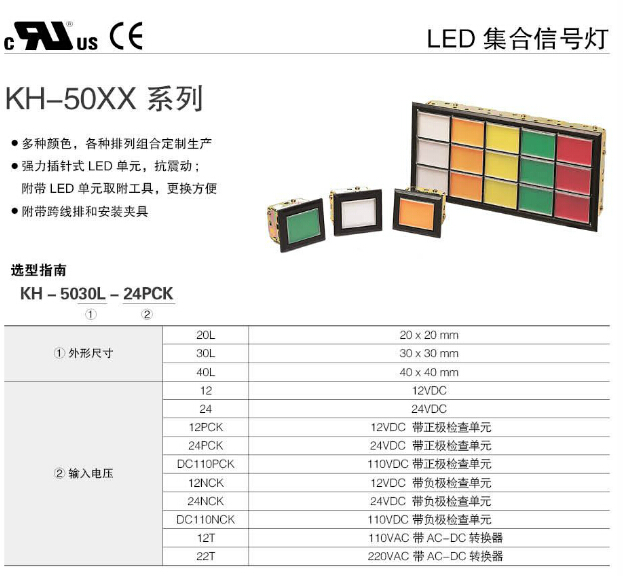 KH-5020L-12,KH-5030L-12,KH-5040L-12,KH-5020L-24,KH-5030L-24,KH-5040L-24,KH-5030L-24PCK,Koino LED集合信號 |
