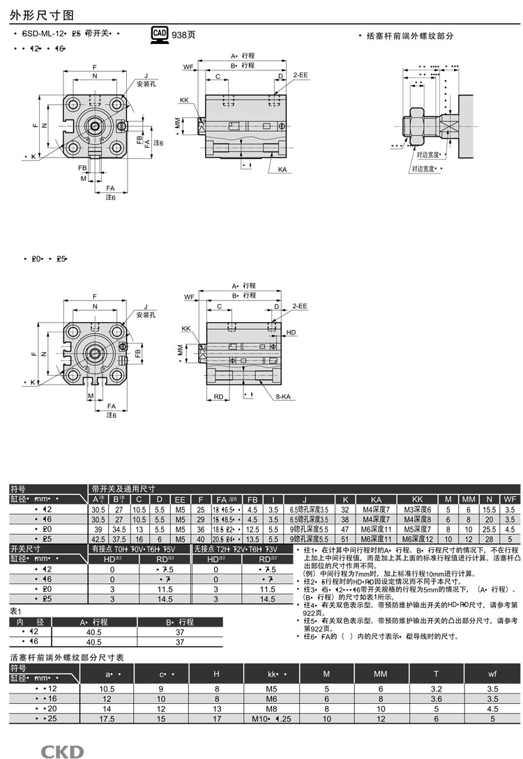 SSD-M-12-5,SSD-ML-12-5,SSD-ML1-12-5,SSD-ML-63-50,SSD-M-63-50,CKD超緊湊型氣缸