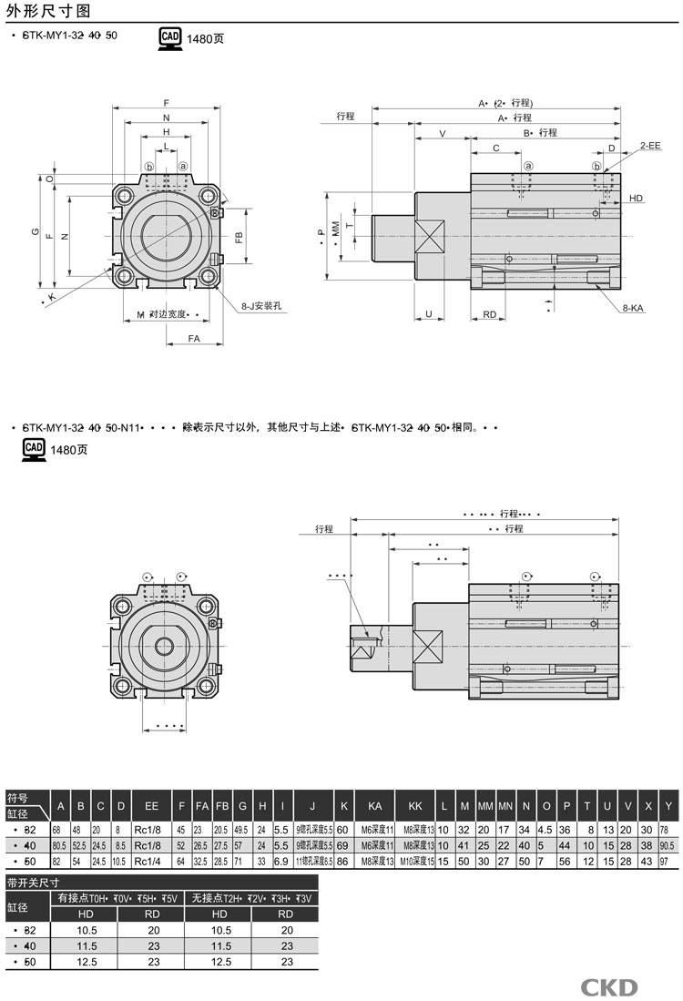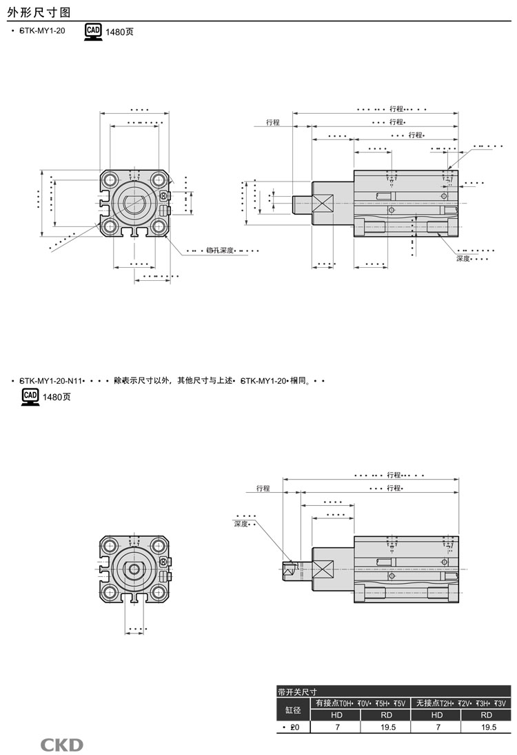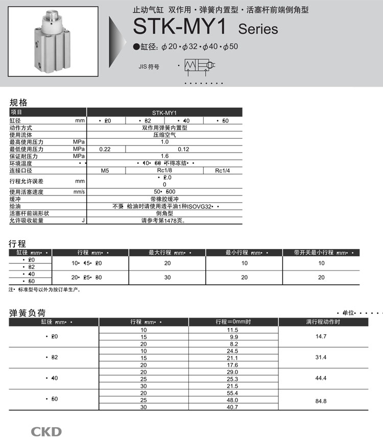 STK-MY1-20-10,STK-MY1-32-10,STK-MY1-40-20,STK-MY1-50-20,STK-MY1-20-15,STK-MY1-40-25,CKD止動(dòng)氣缸
