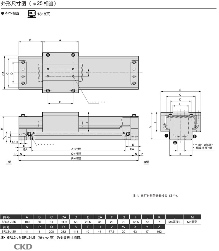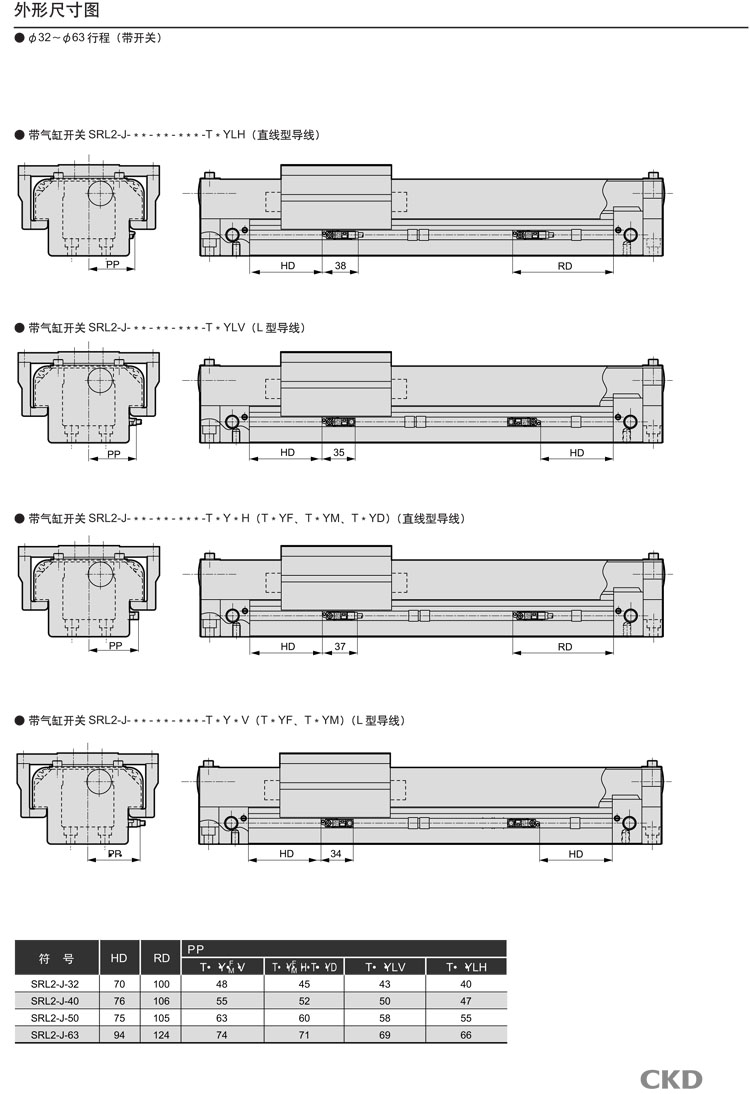 SRL2-J-00-25B,SRL2-J-00-32B,SRL2-J-LJ-40B,SRL2-J-LJ-50B,SRL2-J-LJ-63B,CKD無活塞桿型氣缸