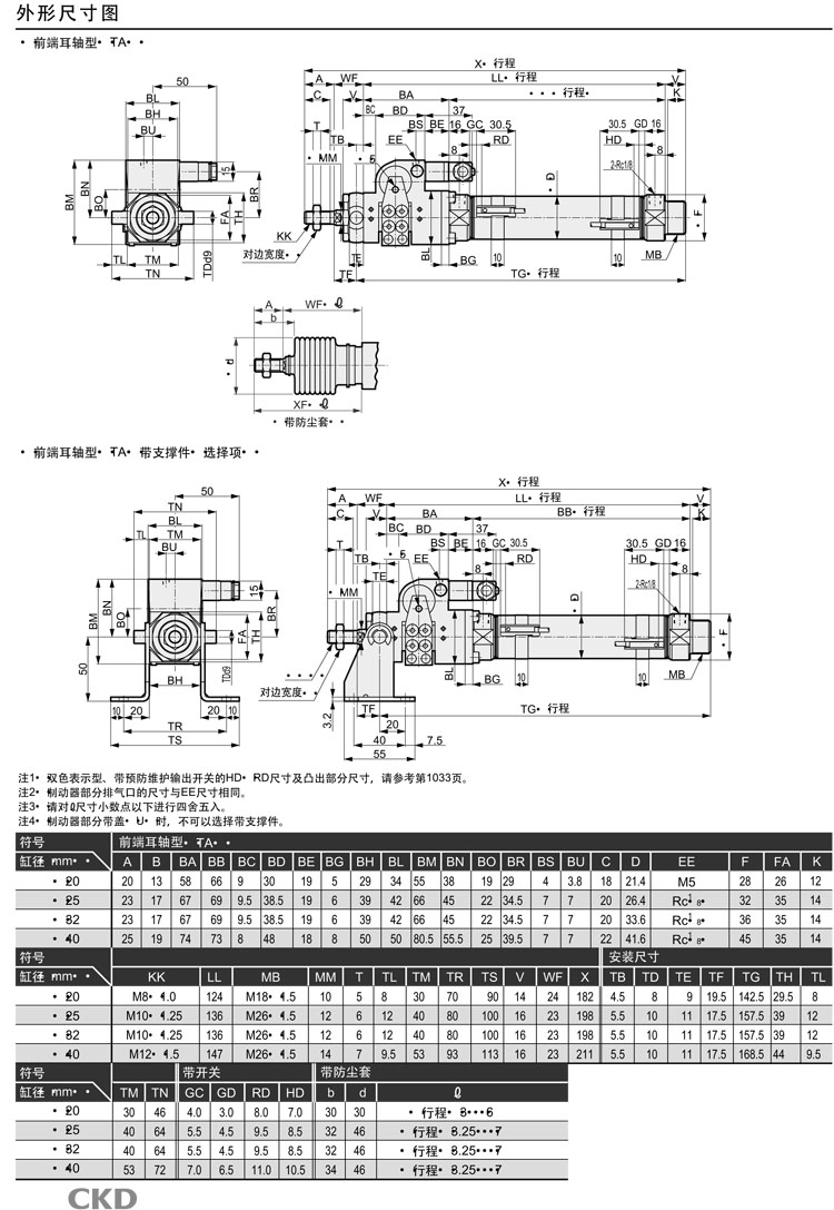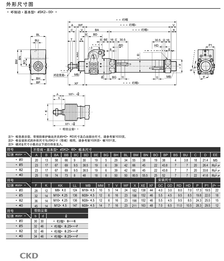 JSK2-V-TB-40-25,JSK2-V-TB-40-50,JSK2-V-TB-40-75,JSK2-V-TB-40-100,JSK2-V-TB-40-125,JSK2-V-TB-40-150,CKD制動氣缸