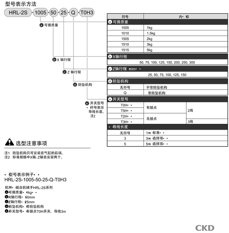 HRL-2S-1005,HRL-2S-1010,HRL-2S-1505,HRL-2S-1510,HRL-2S-1515,CKD雙動作空壓機械手