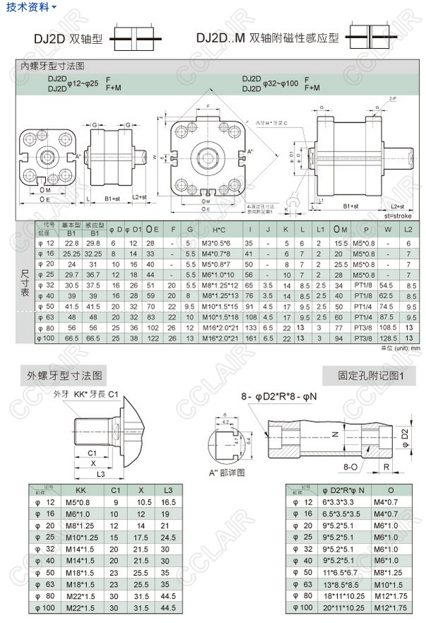 DJ2T-50M40,DJ2T-50M45,DJ2T-50M50,DJ2T-50M75,DJ2T-50M100,DJ2T-50M150氣缸 |