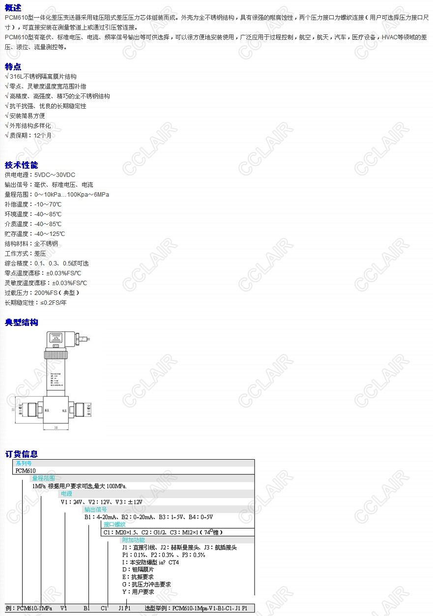 PCM610-10MPa-V1-B1-C1,PCM610-10MPa-V1-B1-C2,PCM610-10MPa-V1-B1-C3,PCM610-10MPa-V1-B2-C1,PCM610差壓變送器 |