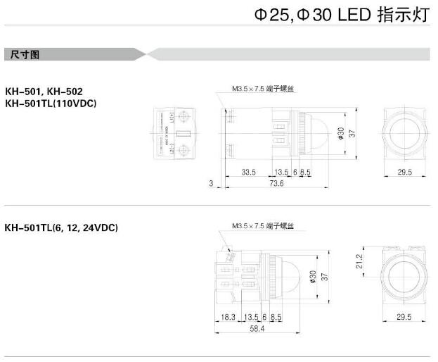 KH-501,KH-502,KH-505-25,KH-506-25,KH-501TL,KH-503,KH-504,KH-505,KH-506,KH-503TL,Koino LED指示燈