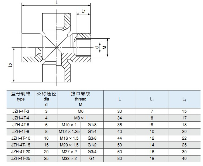 JZH-4T-Z3,JZH-4T-Z4,JZH-4T-Z6,JZH-4T-Z8,JZH-4T-Z10,JZH-4T-Z15,JZH-4T-Z20,JZH-4T-Z25,組合式四通終端管接頭