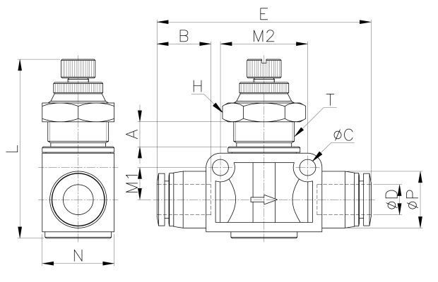 Model ¢D ¢P T L/MIN L/MAX A E N ¢C B H(Hex) M1 M2 WEIGHT(g) BOX(EA)