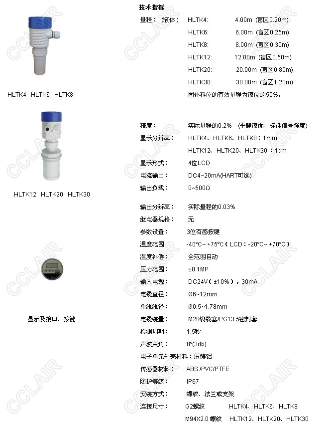 HLTK4,HLTK6,HLTK8,HLTK12,HLTK20,HLTK30,HLTK一體式超聲波物位計(jì)