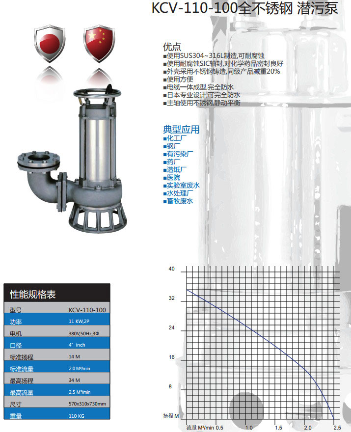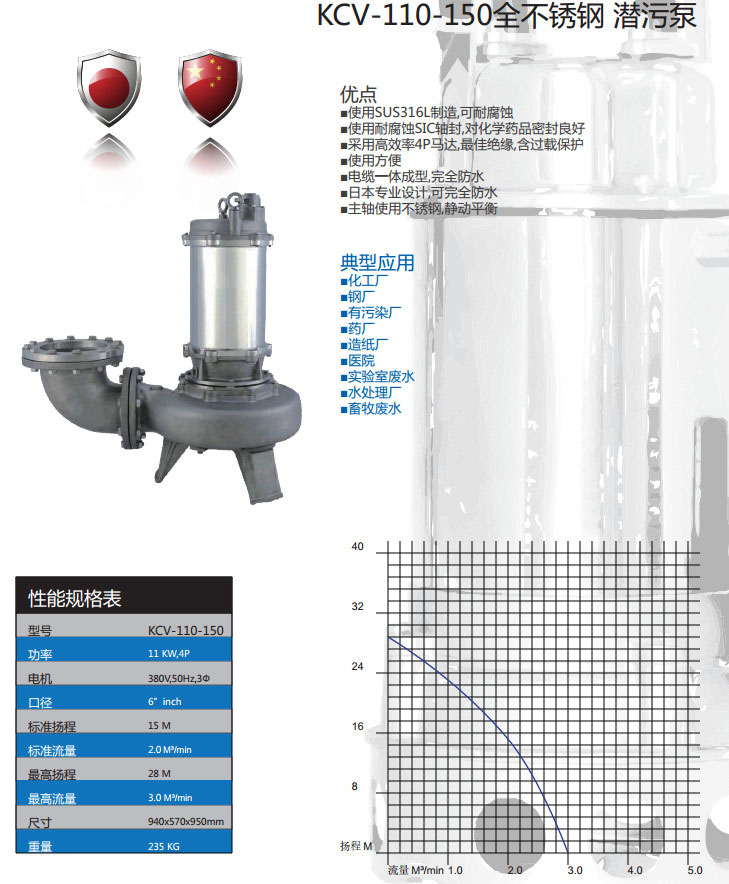 KCV-110-100,KCV-110-150,全不銹鋼潛污泵