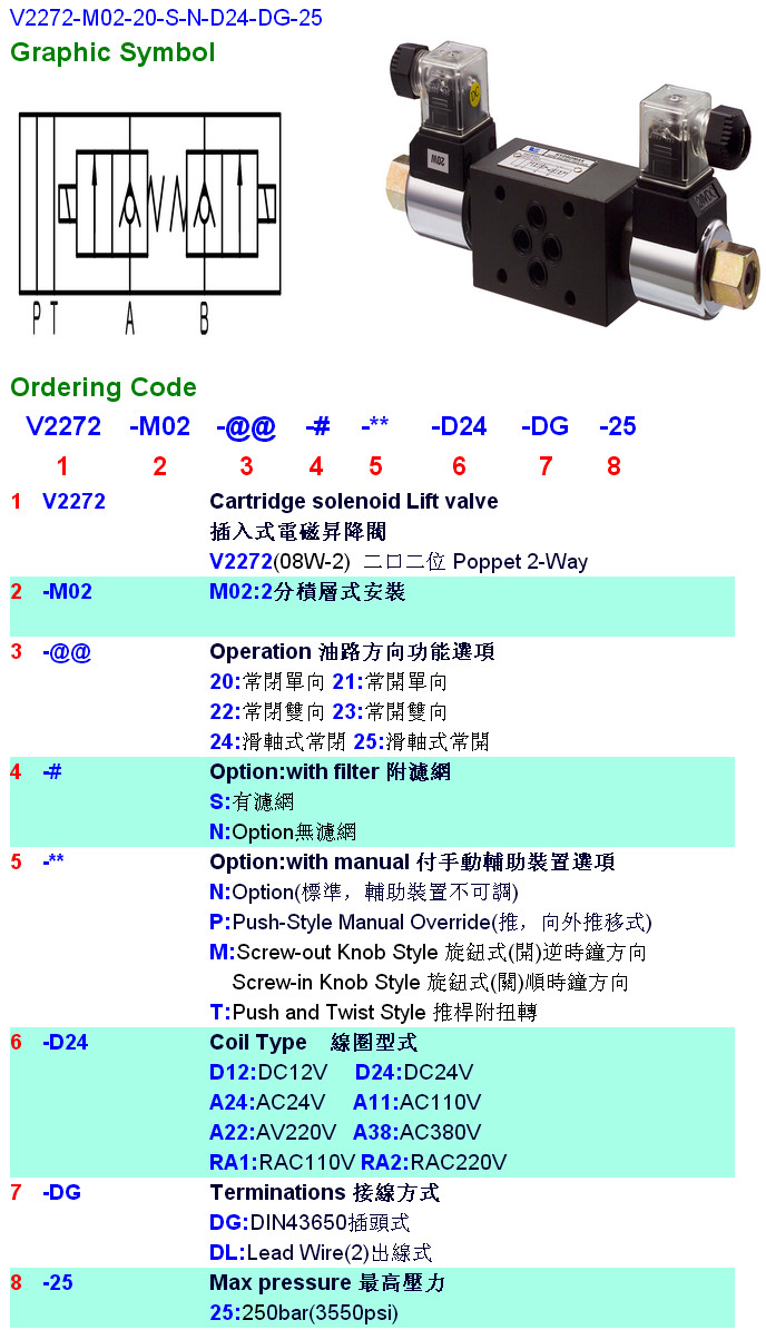 V2272-M02-21,V2272-M02-22,V2272-M02-23,V2272-M02-24,V2272-M02-20-S-N-D24-DG-25,HYDROMAX插入式電磁升降閥 |
