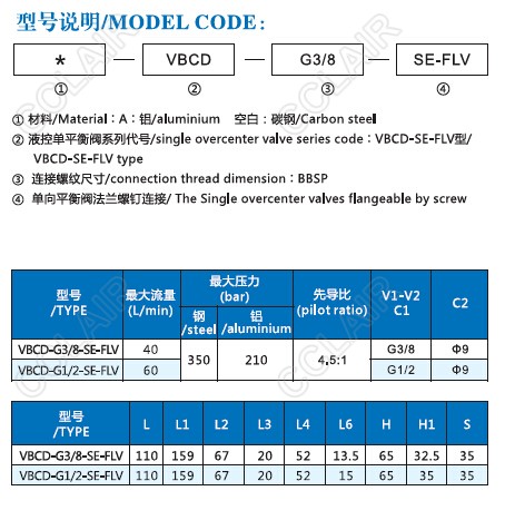 VBCD-G3/8-SE-FLV,VBCD-G1/2-SE-FLV,VBCD-SE-FLV,單向平衡閥