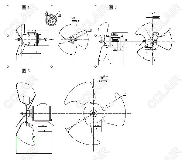 前吹(空氣由電動(dòng)機(jī)流向葉輪) |