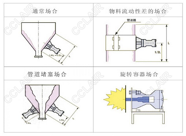 ◎通過(guò)壓縮空氣為動(dòng)力,瞬間釋放,推動(dòng)內(nèi)部的錘頭打擊底部,將強(qiáng)力沖力傳遞給料斗壁面,有效地?fù)羝莆锪纤鶚?gòu)成的拱橋,使積料松動(dòng),達(dá)到卸灰順暢的目的。