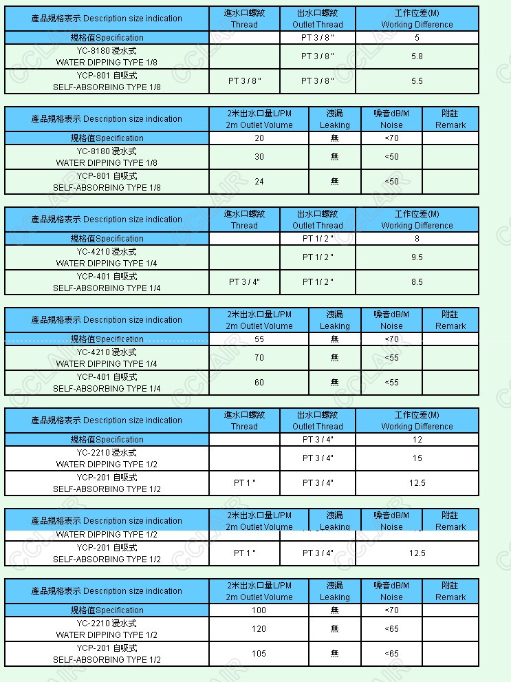 YC-8180,YCP-801,YC-4210,YCP-401,YC-2210,YCP-201,浸水式泵浦、吸水式泵浦YEONG CHYUAN