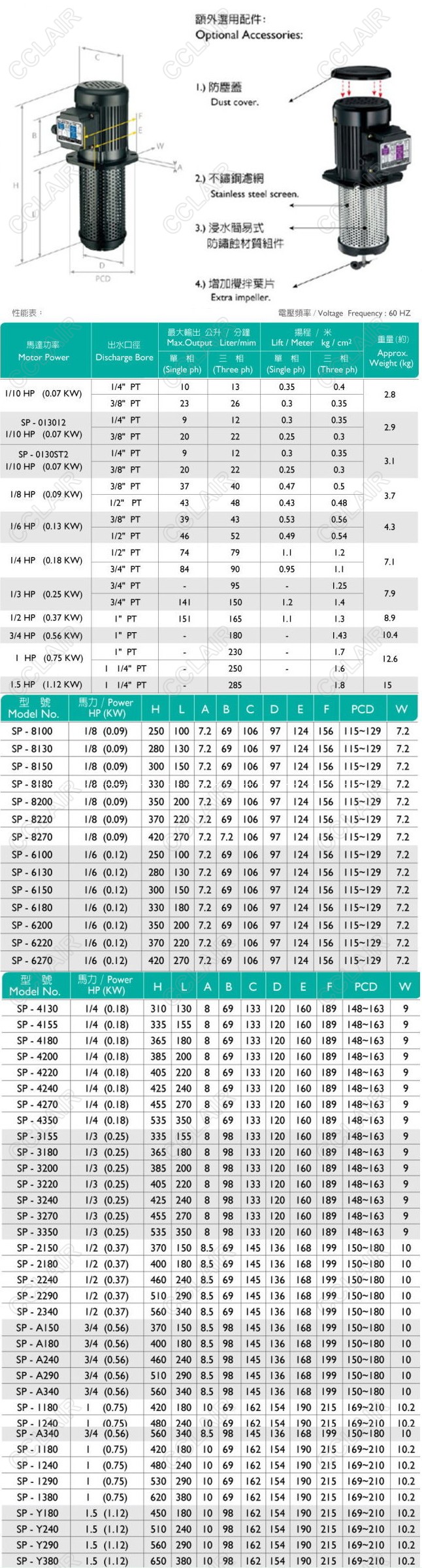 SP-8100,SP-8130,SP-8150,SP-8180,SP-8200,SP-8220,SP-8270,SP過(guò)濾型冷卻泵浦FLAIR