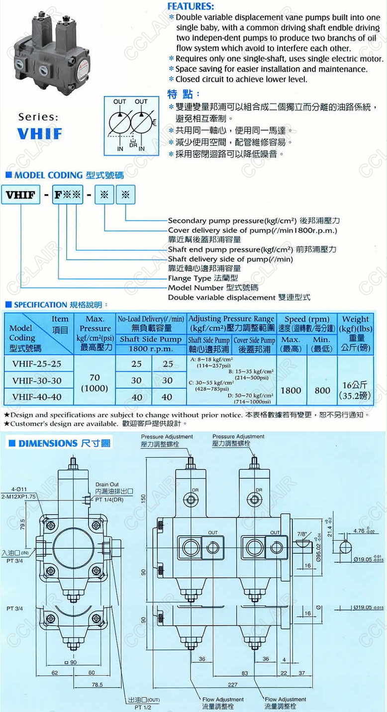 VHIF-F40D-PA,可變雙聯泵浦+齒輪泵