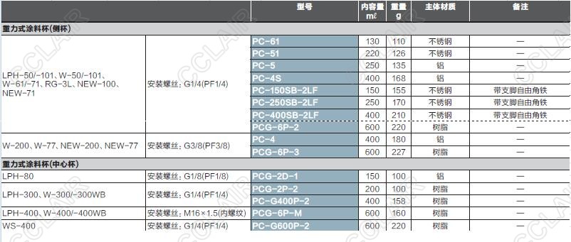 潤(rùn)色和少量涂裝時(shí),使用重力式的側(cè)杯(130~600ml),中心料杯(150~600ml)