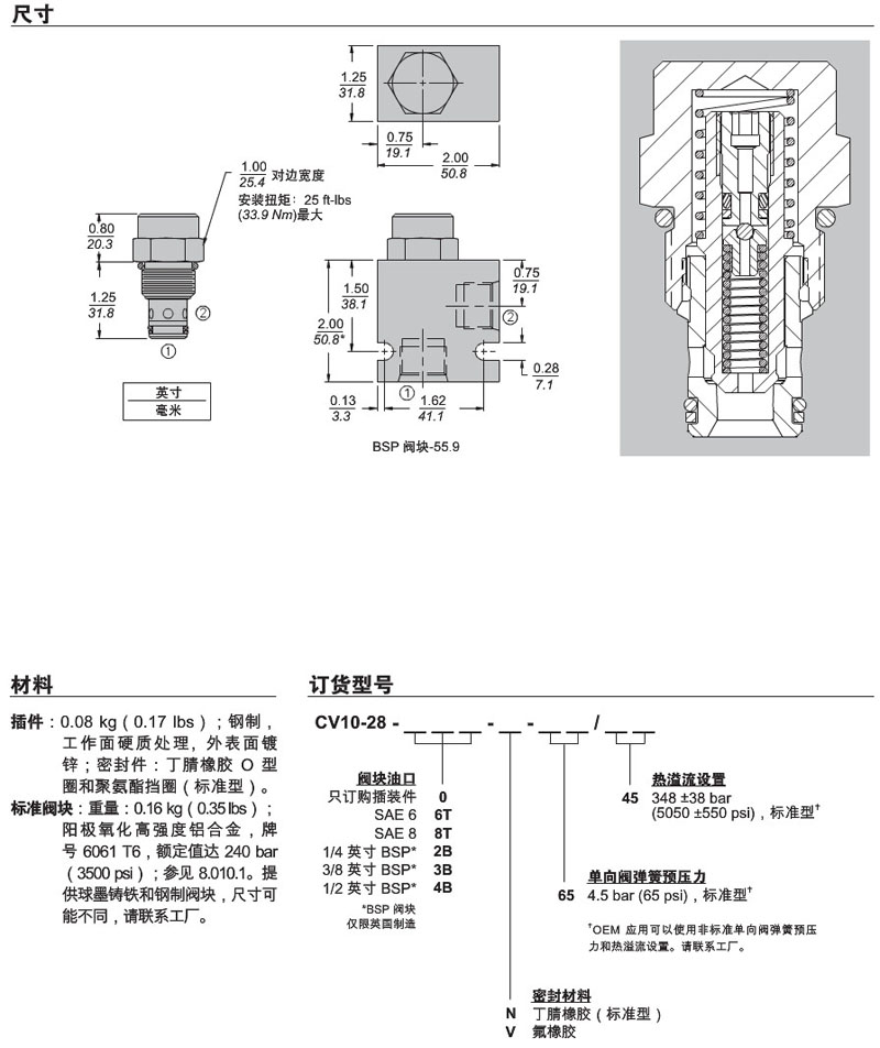 CV10-28-0-N-65/45,CV10-28-2B-N-65/45,CV10-28-3B-V-65/45,熱溢流單向閥