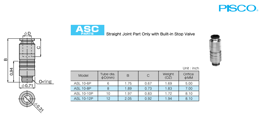 ASL10-6P,ASL10-8P,ASL10-10P,ASL10-12P,PISCO耐熱管接頭