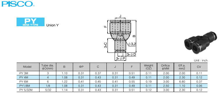 PY3M,PY4M,PY6M,PY1/8M,PY5/32M