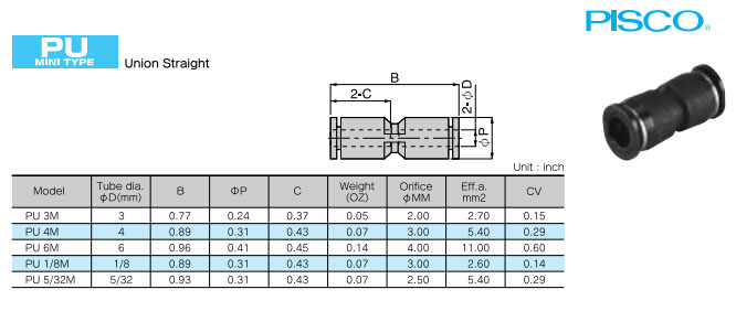 PU3M,PU4M,PU6M,PU1/8M,PU5/32M