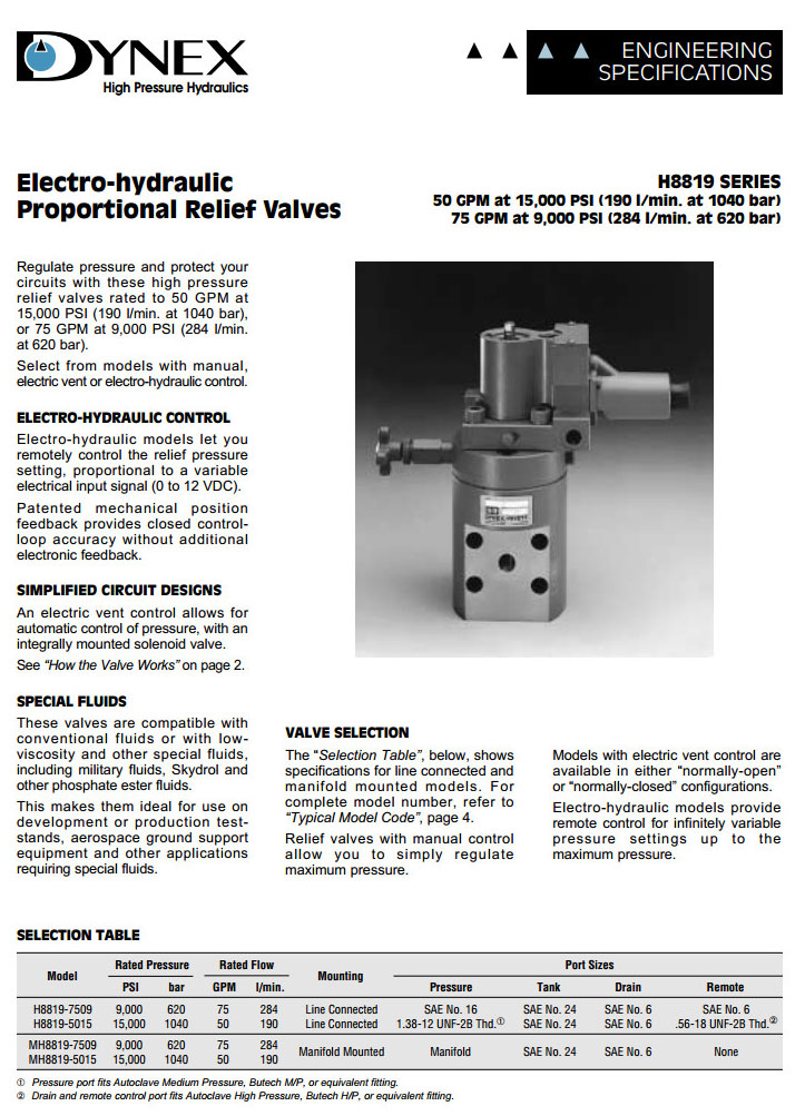 H8819-5015,H8819-7509,DYNEX電液比例溢流閥