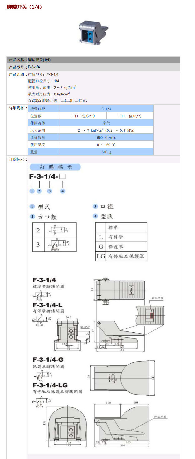F-3-1/4,F-3-1/4-L,F-3-1/4-G,F-3-1/4-LG,PST腳踏開關(guān)