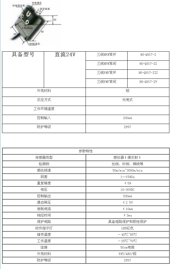 光電式斷絲檢測器,HG-QU17-I,HG-QU17-II,HG-QU17-III,HG-QU17-IV,