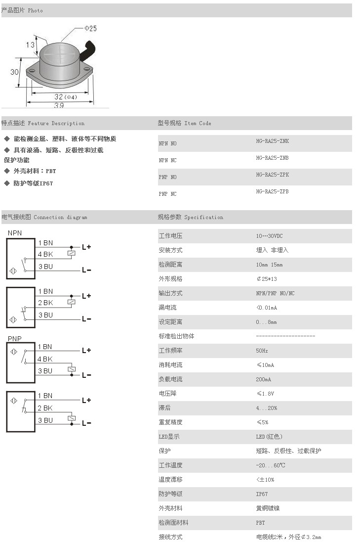電容式接近傳感器 HG-RA25-ZNK,HG-RA25-ZNB,HG-RA25-ZPK,HG-RA25-ZPB,
