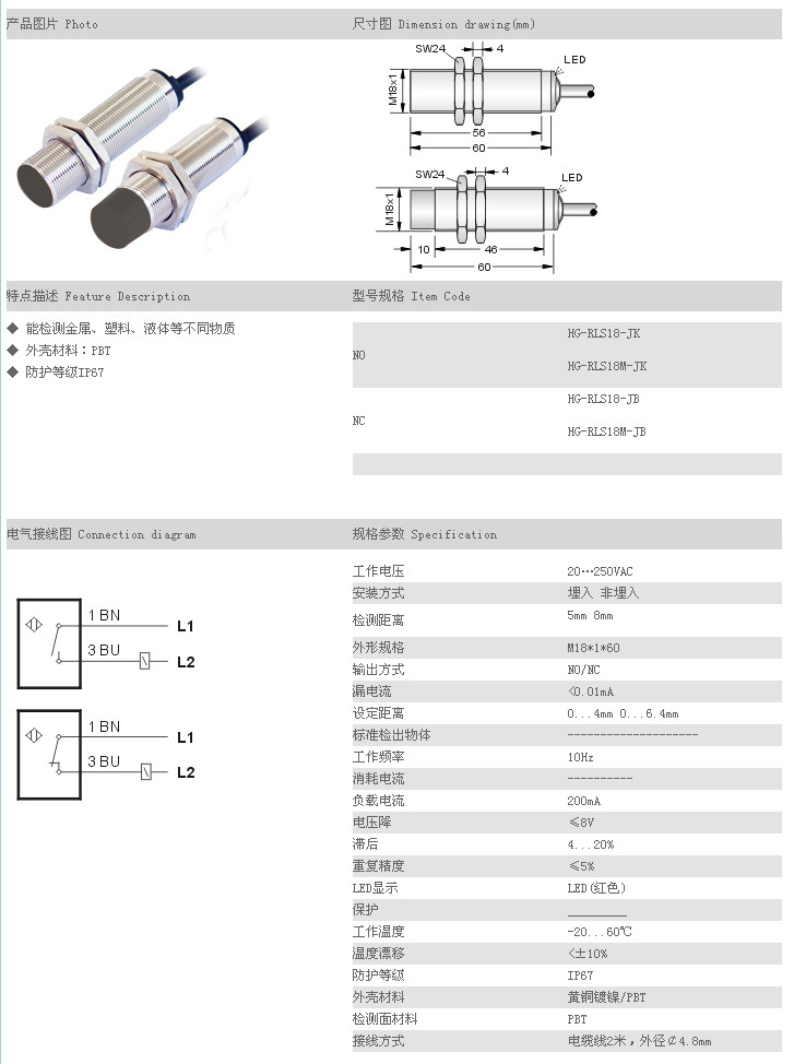 電容式接近傳感器 HG-RLS18-JK,HG-RLS18M-JK,HG-RLS18-JB,HG-RLS18M-JB,
