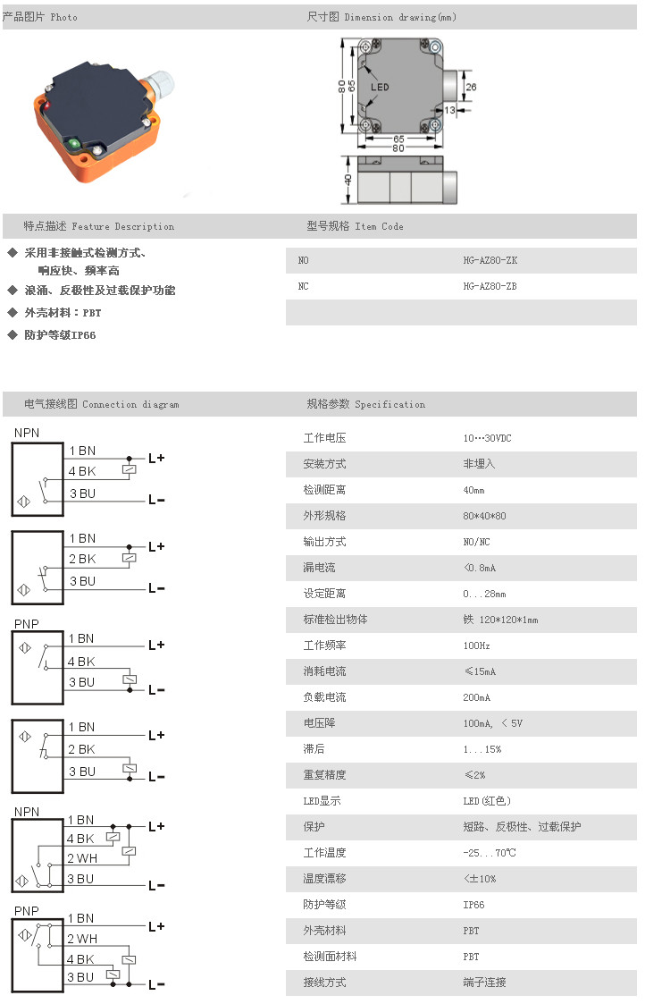 組合型接近傳感器 HG-AZ80-ZK,HG-AZ80-ZB,