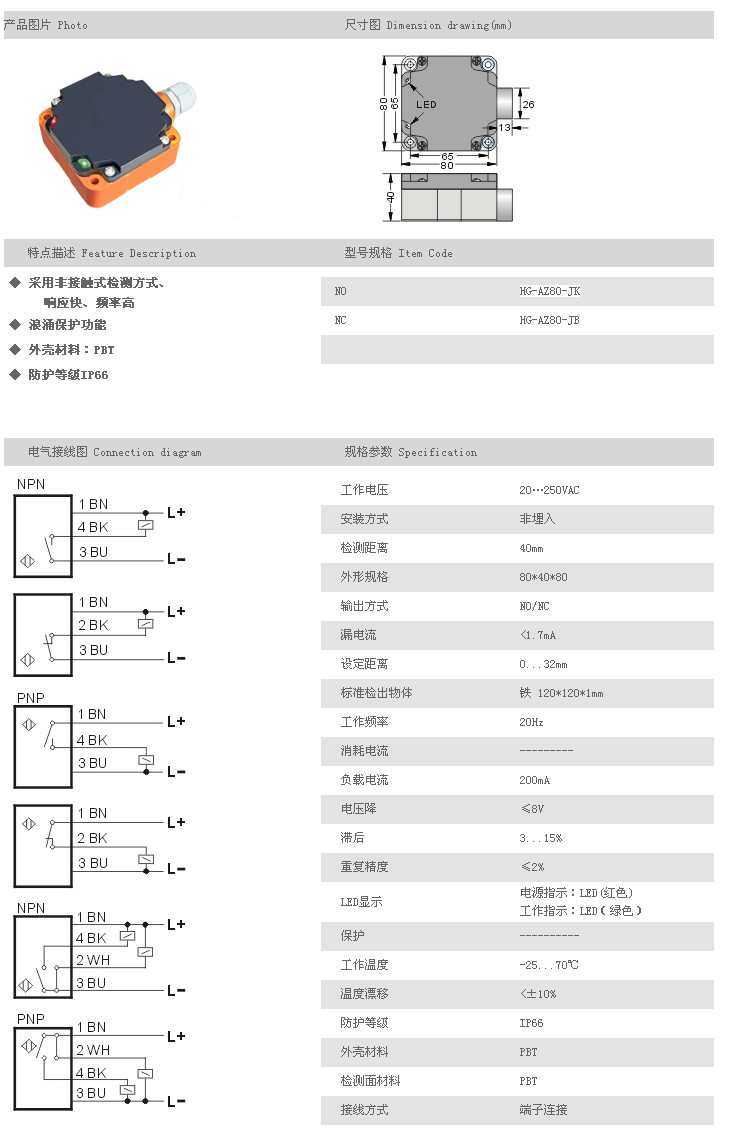 組合型接近傳感器 HG-AZ80-JK,HG-AZ80-JB,
