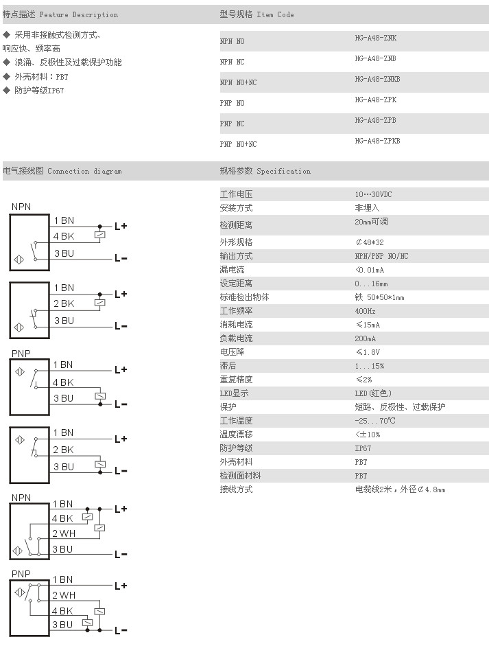 餅型接近傳感器 HG-A48-ZNK,HG-A48-ZNB,HG-A48-ZNKB,HG-A48-ZPK,HG-A48-ZPB,HG-A48-ZPKB,