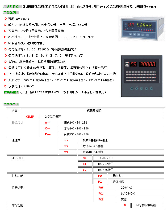 XSLE/A,XSLE/C,XSLE/D,XSLE,高精度溫度巡檢儀