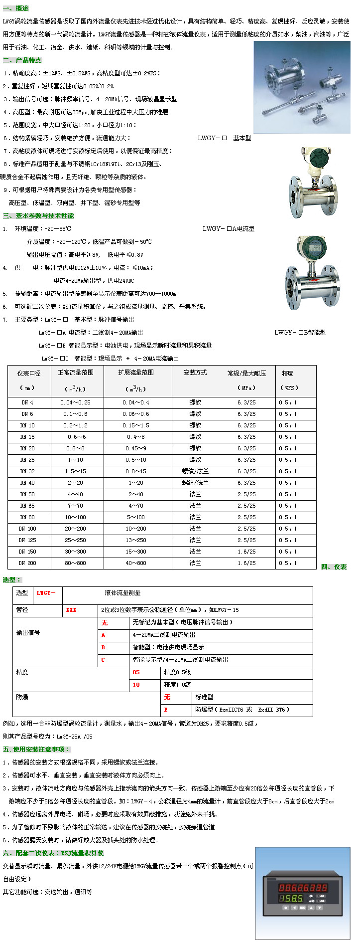 LWGY-4,LWGY-6,LWGY-10,LWGY-15,LWGY-20,LWGY-25,LWGY-32,LWGY-40,LWGY-50,LWGY,渦輪流量計(jì)