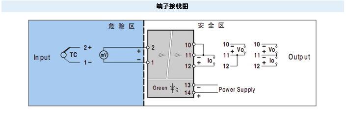 接收現場危險區(qū)域的熱電偶信號或其它mv信號,經過隔離和線性化處理,轉換為線性化的直流信號(420mA、05V、010V)輸出至安全區(qū)的控制系統(tǒng)或其它單元組合儀表。