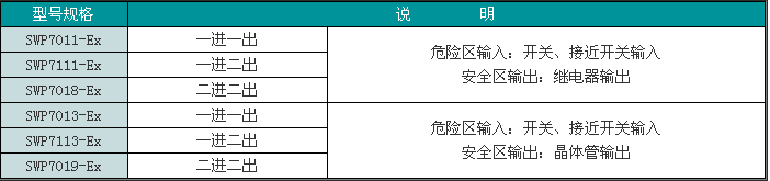 SWP7011-Ex,SWP7111-Ex,SWP7018-Ex,SWP7013-Ex,SWP7113-Ex,SWP7019-Ex開關(guān)量輸入隔離式安全柵