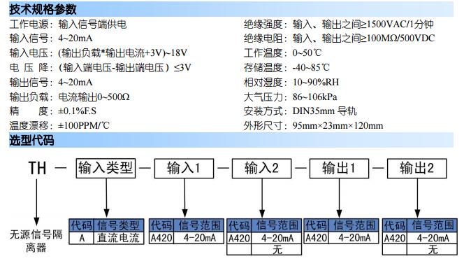 TH-A-A420-A420,TH-A-2A420-2A420,TH無源信號隔離器