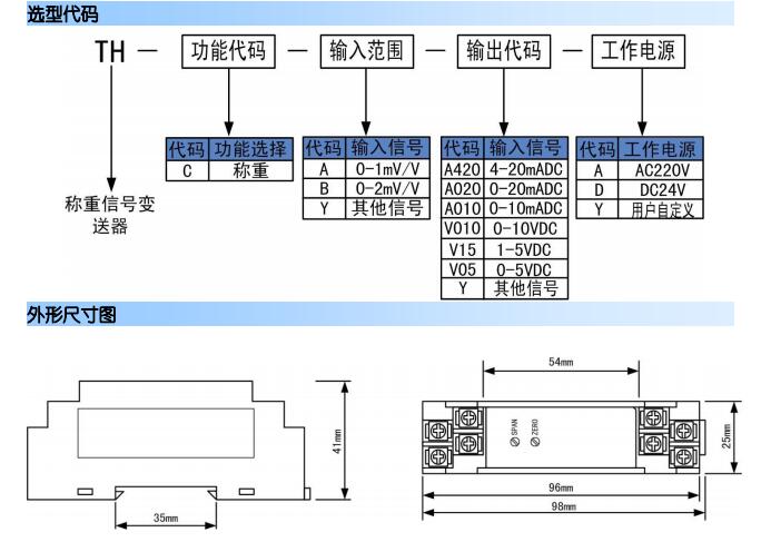 TH-C-A-A420-A,TH-C-Y-A420-Y,TTH-C-B-A420-D,TH-C-B-V010-D,TH稱重信號變送器