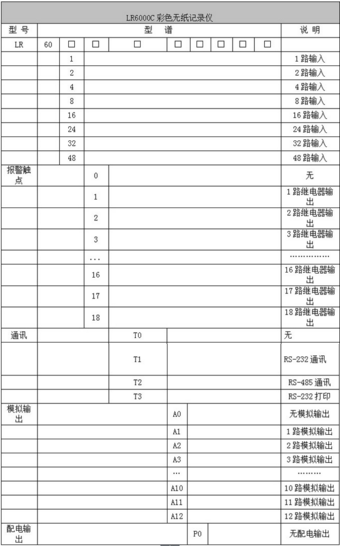LR6000C系列彩色電流記錄儀48路(不含報(bào)警,變送等其它功能)萬能輸入(可組態(tài)選擇輸入:標(biāo)準(zhǔn)電壓、標(biāo)準(zhǔn)電流、熱電偶、熱電阻、頻率、毫伏等)??蓭?8路報(bào)警輸出,12個(gè)變送輸出,RS232/485通訊接口,以太網(wǎng)接口,微型打印機(jī)接口和USB接口,SD卡插座;可提供傳感器配電;具有強(qiáng)大的顯示功能,實(shí)時(shí)曲線顯示,歷史曲線追憶,棒圖顯示,報(bào)警列表顯示。人性化的外觀設(shè)計(jì)、完美的功能體現(xiàn)、可靠的硬件品質(zhì)、精湛的制造工藝,使LR6000C具有更高的性能價(jià)格比。
