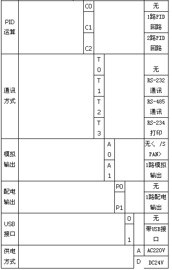 熱電阻:Pt100、Cu50、BA1、BA2。 |