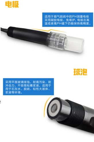 LR-PH5030用于石灰水、脫硫、粘性大液體、漿液等環(huán)境,使用方便,可較少次數(shù)的清洗,平頭PH電極,不容易粘著漿液,適合條件惡劣的環(huán)境檢測。