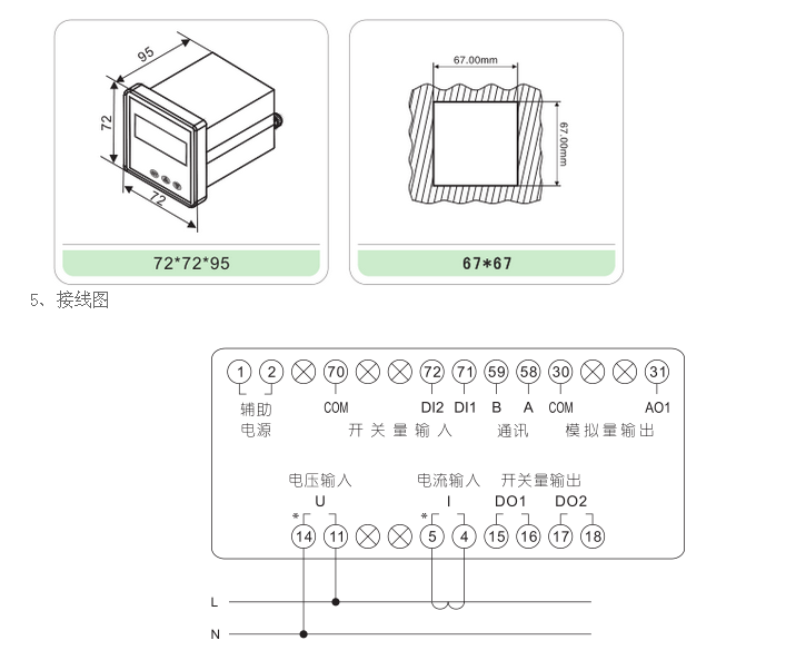擴(kuò)展:AC5A以上需配電流互感器,AC500V以上需配電壓互感器,現(xiàn)場可編程設(shè)置輸入?yún)?shù)變比。
