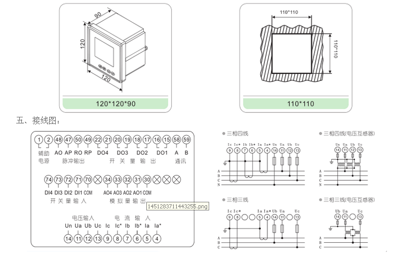輸出: 2路開關(guān)量輸出,1路模擬量輸出,2路電能脈沖輸出(脈沖常數(shù)3200imp/kwh)
